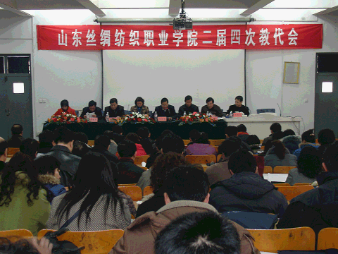 2月28日,我院隆重召开第二届四次教代会,共有79名代表参加。孙志斌院长作了《学院工作报告》;吕怀法主任作了《山东丝绸纺织职业学院2008年度财务决算报告》、《山东丝绸纺织职业学院2009年度财务预算报告》、《山东丝绸纺织职业学院工会委员会2008年度财务决算报告》和《山东丝绸纺织职业学院工会委员会2009年度财务预算报告》,并对我院财务管理制度作了详细的说明;夏洪清主任作了对《课时(岗位)补贴发放办法》的说明。