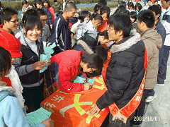 为提高大学生对艾滋病的认识和自我防护意识,引导他们养成良好的生活习惯,倡导健康的生活方式,远离艾滋病,12月1日,学院红十字会开展了主题为“你我共参与 遏制艾滋病”的宣传教育系列活动。红十字会志愿者向过往同学发放艾滋病防治宣传手册,积极宣传艾滋病预防措施,倡导文明健康的行为方式,使同学们对艾滋病有了进一步的了解,最后志愿者和同学们一起在“关爱你我 预防艾滋病”的横幅上签下了自己的名字,并表示要以实际行动争做防艾滋病先锋,为营造和谐社会贡献自己的一份力量。