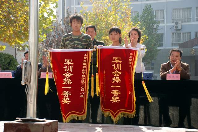 08级新生进行了精彩的军训会操表演。经过评比08国际商务班和物业管理班获得了一等奖,08纺品设计1班、纺品设计2班、纺品设计3班、染整技术2班、染整技术3班、物流管理1班、物流管理2班获得二等奖,08机电设备1班、纺织机电班、服装设计班、服装制版1班、化工3班、染整4班获得三等奖,赵廷美等35名同学被授予“军训标兵”称号,一号公寓1113等29个宿舍被评为军训先进宿舍。