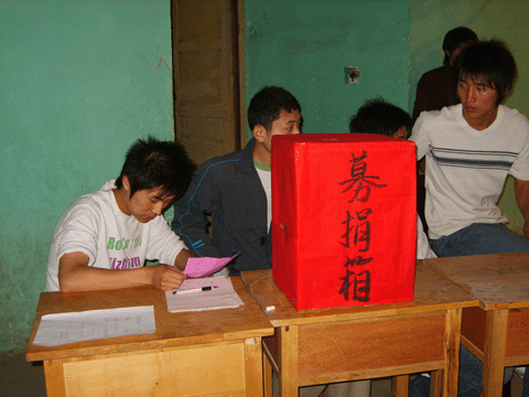学院迅速启动了工作程序,在第一时间讨论通过了亓程同学减免学费的申请;爱心慈善捐款晚会也在紧锣密鼓的筹备着。亓程家庭遭遇不幸的消息在同学中间传得很快,在捐款晚会的筹备时间中,我们就陆续接到了各系各部门老师同学的捐款电话,甚至有些老师们不顾工作的繁忙,亲自跑到我系办公室询问亓程现在的情况并带来了他们的爱心捐款。