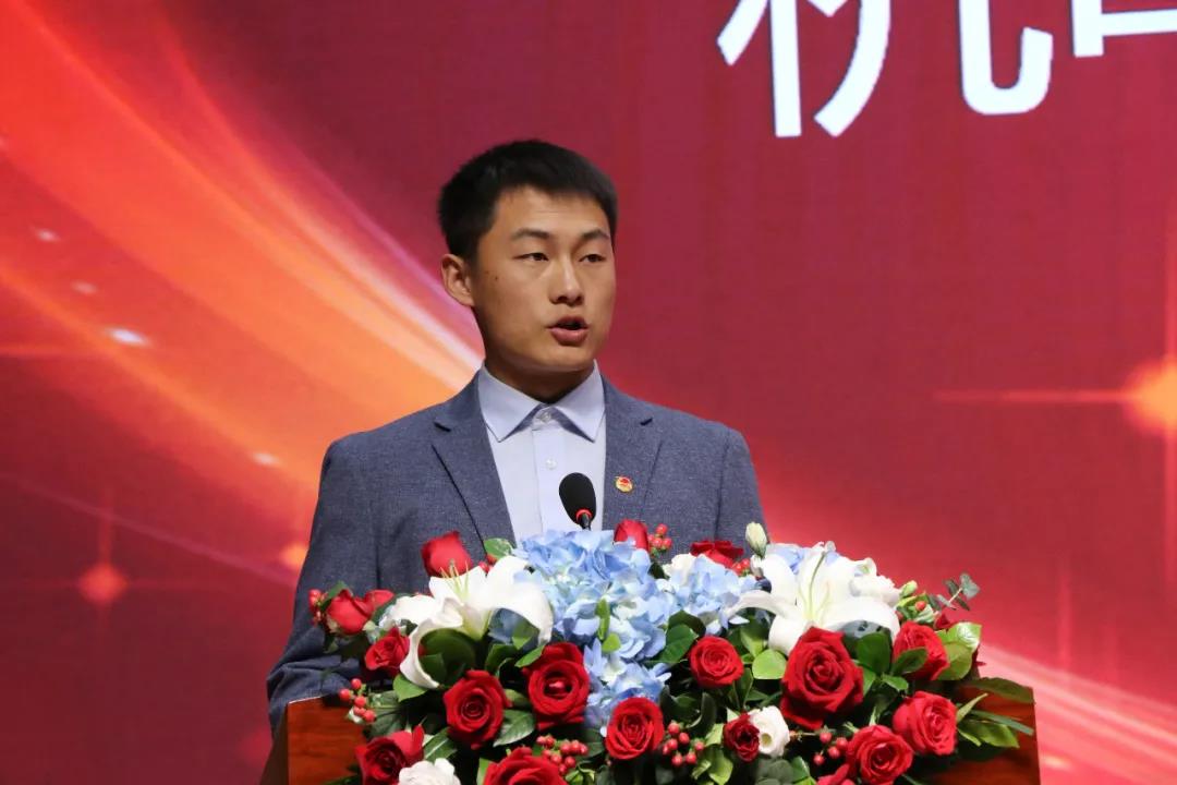 ▲在校生代表:机电工程系19栋梁一班马兴刚
