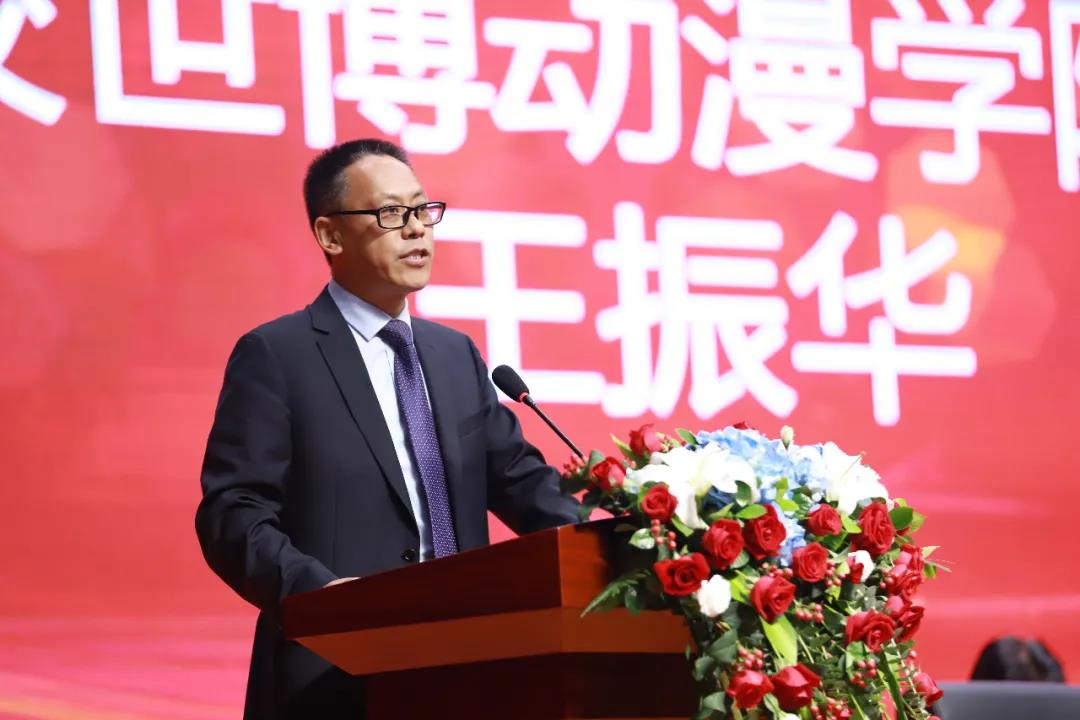 ▲山东世博动漫产业集团董事长、学校世博动漫学院院长王振华