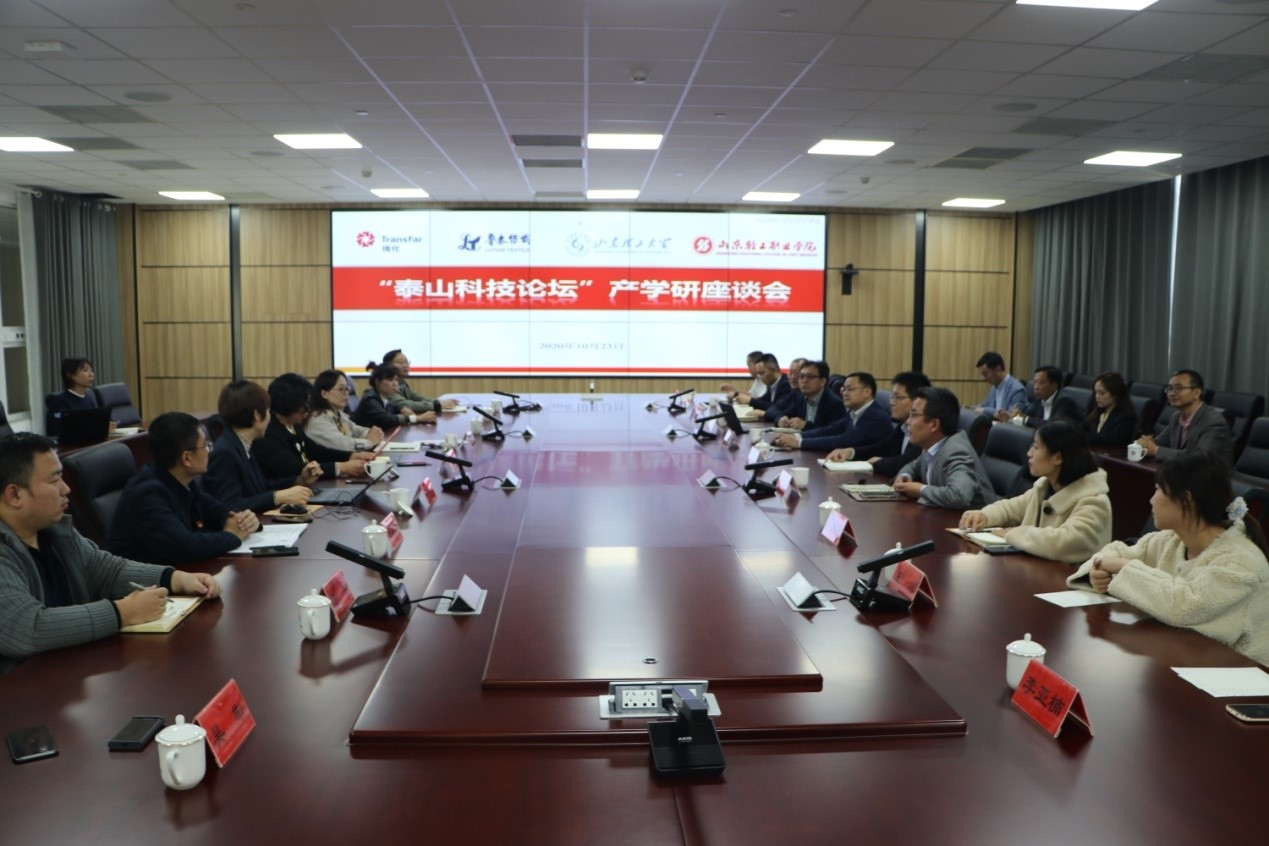 10月23日下午15点,“泰山科技论坛”产学研座谈会在学校图文信息大楼第二会议室顺利召开。学校党委委员、副院长梁菊红,浙江传化化学集团国内营销中心总经理王浩然,鲁丰织染有限公司技术研发部副总经理齐元章,山东理工大学纺织服装学院副院长姜兆辉,以及学校国际合作与继续教育中心、教务处、科研处、轻化工程系相关关负责人参加了座谈会。