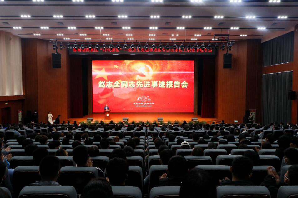 报告会上,与会人员一起观看了赵志全同志先进事迹专题片。报告团成员李兵同志以“永不停步的创业路”为题,深情回忆赵志全同志带领职工脚踏实地、干事创业的艰辛历程;赵丽丽同志以“梦想起飞的地方”为题,深情讲述赵志全同志关心自己、支持自己,让自己坚定信心留在鲁南做医药研发并取得巨大成功的温暖故事;贺瑞同志以“照亮心灵的烛光”为题,讲述了赵志全同志在日常工作生活中关爱职工的点点滴滴,体现了赵志全独特的人格魅力;赵志全的女儿赵龙因故无法来到现场,特委托韩鹏同志代她参加报告会,以“爸爸我永远的骄傲”为题,描述了她与赵志全同志深厚的父女之情,让与会人员看到了一个“淳朴善良,待人真诚,热爱生活,意志坚强,以梦为马,一路披荆斩棘”的父亲。鲁南制药集团党委委员、副总经理谢宇在总结报告中指出,赵志全同志是新时期优秀企业家的代表,更是新时期优秀共产党员的代表。他把共产党员精神的力量与市场的力量紧密结合,树立起了一面当代优秀党员企业家的光辉旗帜。他用一生的忠诚和智慧践行着伟大的沂蒙精神,并赋予新的时代内涵,是新时代沂蒙精神的践行者。报告团成员感人肺腑的报告,让这位革命老区成长起来的富有创新精神的企业家,新时期传承和弘扬沂蒙精神的先进典型,一心为民、一心向党、无私奉献、艰苦创业的优秀共产党员,自觉践行社会主义核心价值观的时代楷模,让全体听众的心灵受到深深地震撼。持续一个多小时的赵志全同志先进事迹报告,深刻回答了“如何做人、如何做新时期共产党员”的问题,会场多次爆发热烈、持续的掌声。掌声和泪水交织,是师生对赵志全的敬仰和怀念;掌声和泪水背后,是凝聚在师生心中的信念和力量。