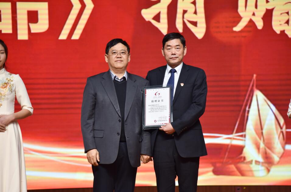 报告会上,“时代楷模”赵志全先进事迹报告团向学校捐赠《赵志全时代楷模报告文学——使命》。党委书记牛圣银代表学校接受赠书并向报告团颁发捐赠证书。