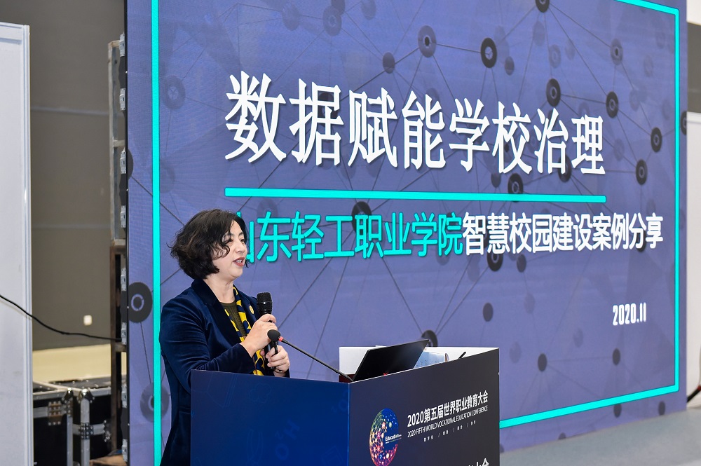 在第二届中德职业教育国际产教融合研讨会暨中德职业教育产教融合联盟中方理事会第二次理事会议上,中德职业教育产教融合联盟对新增常务理事单位进行授牌,梁菊红副院长代表学院接受授牌。在“一带一路”纺织服装职业教育联盟成立大会上,我院被聘为山东省“一带一路”纺织服装职业教育联盟理事单位,纺织服装工程系李永鑫主任代表学院领取联盟成员证书。在2020世界职业技术教育学会教育信息化高峰论坛暨智慧校园成果展上,副院长梁菊红做了题为《数据赋能学校治理—山东轻工职业学院智慧校园建设案例分享》的主旨演讲,同时我院智慧校园建设案例在教育数字化展区进行了展览。
