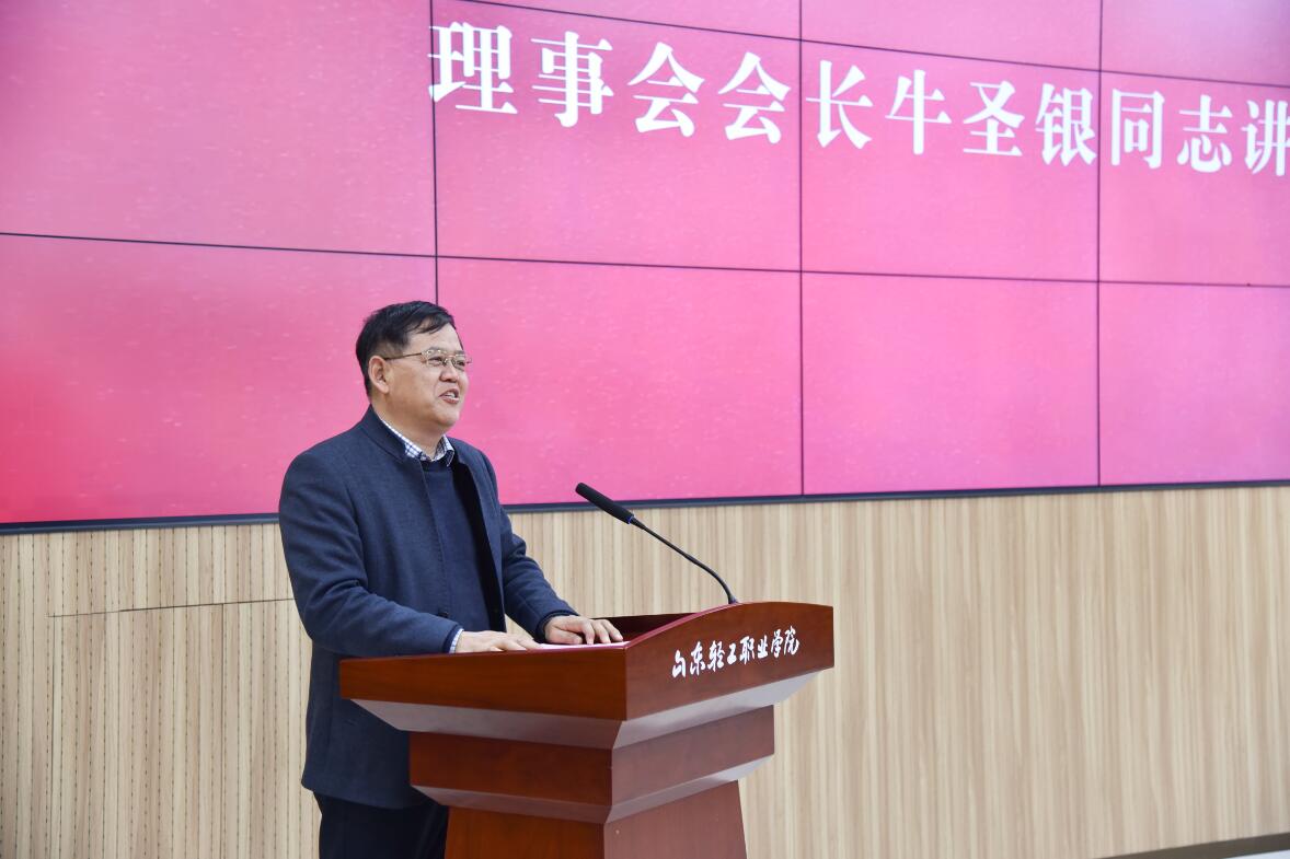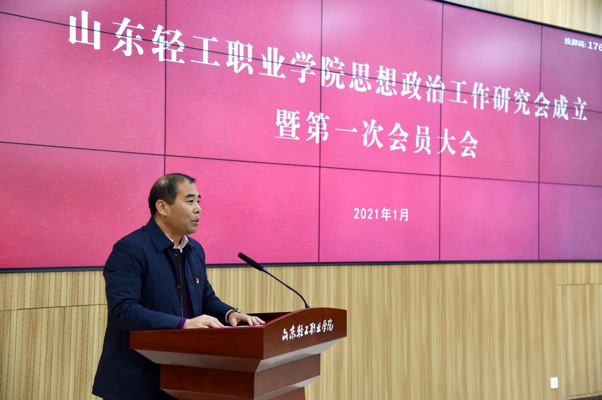 学校党委书记、思想政治工作研究会第一届理事会会长牛圣银在大会上讲话。他强调,要发挥思想政治工作研究会平台效应,强化队伍建设,着力打造大思政队伍,全面提升思政队伍的能力和水平。要聚焦青年学生和青年教师两个主要群体,用中国梦引导学生正确认识时代责任和历史使命,用马克思主义的信仰为青年教师筑牢信仰之基。要通过完善学校党委主导、党支部主心骨、党员主人翁的党建保障机制,确保思想政治工作落到实处。