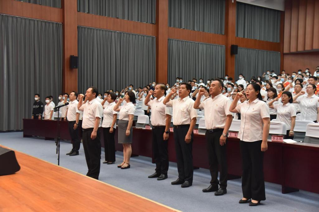 会议在齐声高唱雄壮的国歌声中拉开帷幕,学校党委副书记、院长孙才顺带领全体党员共同重温入党誓词,袁雷宣读受表彰人员。孙才顺,党委委员、副院长梁菊红,党委委员、纪委书记、监察专员王星分别为受表彰的省、市及校级先进基层党组织和个人进行颁奖。