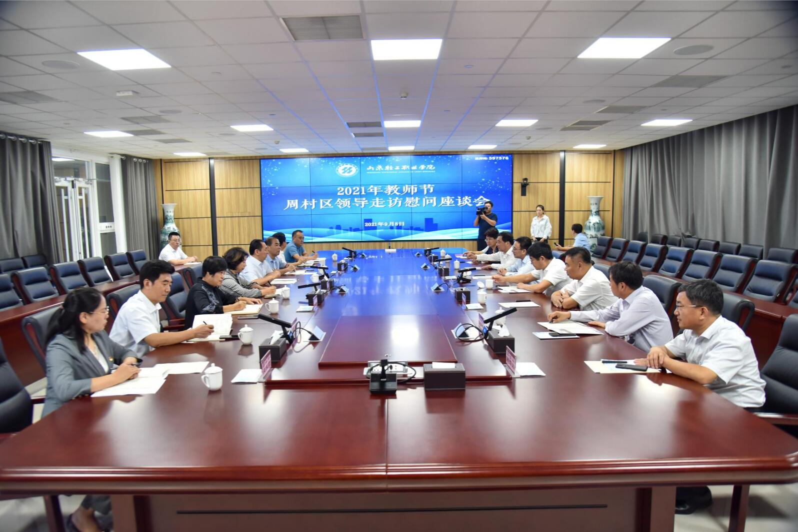 9月8日上午,周村区委书记、文昌湖旅游度假区工委书记沙向东在文昌湖旅游度假区工委副书记解金章,周村区委常委、办公室主任国卫兵,文昌湖旅游度假区工委委员、总工会主席陈辉,周村区副区长赵彩霞,文昌湖旅游度假区工委管委会办公室主任于德水,周村区委教育工委常务副书记、区教育和体育局党组书记、局长安伟,文昌湖旅游度假区地方事业局局长谭明文陪同下来我校开展教师节慰问活动,向学校全体教职工送上节日的问候和诚挚的祝福。学校党委副书记、院长孙才顺等领导班子成员陪同调研座谈。