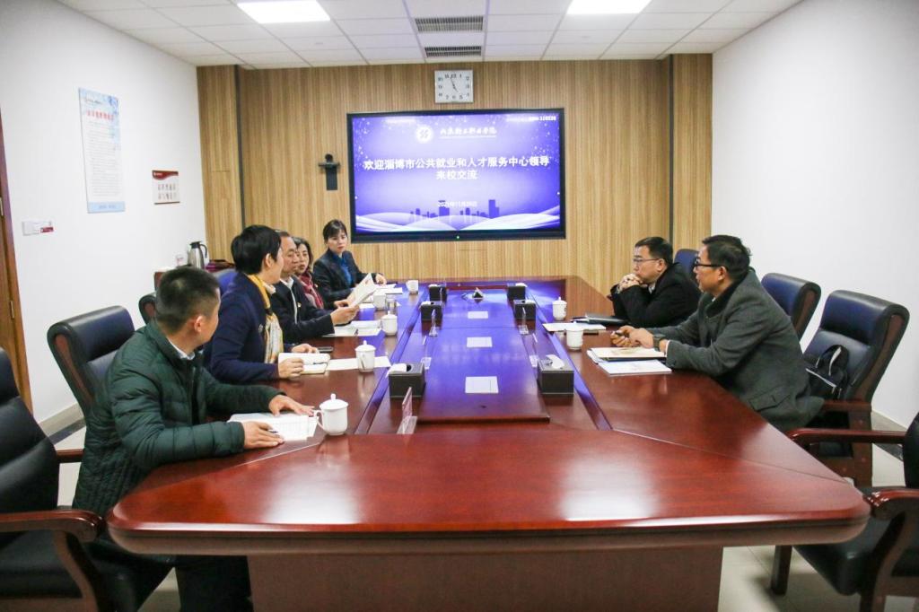 11月26日下午,淄博市公共就业和人才服务中心副主任高旭军、王宏伟等一行4人来校考察交流工作,学校领导孙才顺、梁菊红及有关处室和系陪同调研。