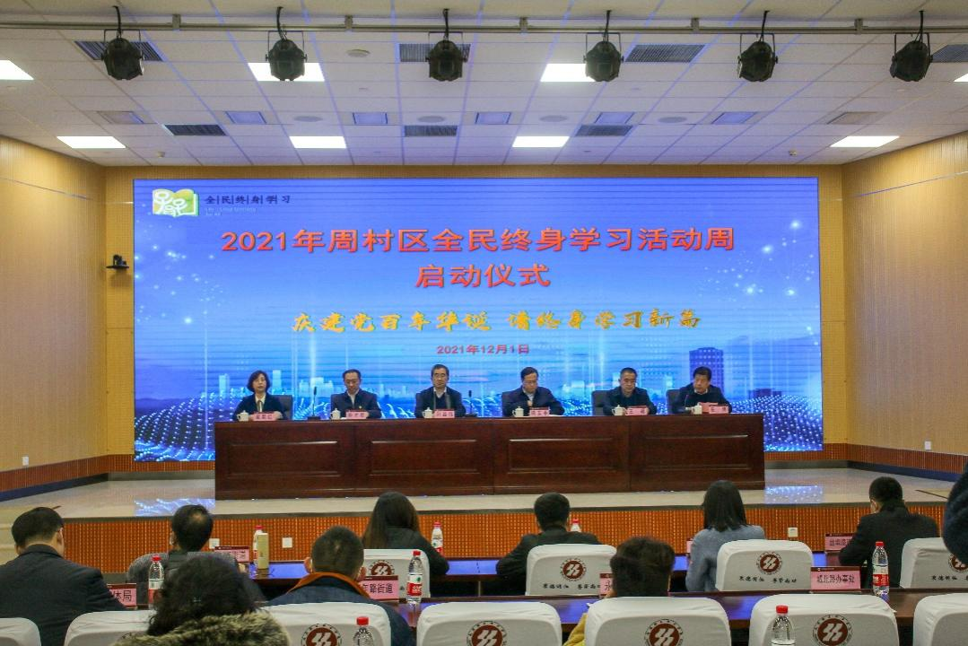 为全面落实省教育厅、市教育局关于开展全民终身学习活动周的相关要求,大力宣传终身教育思想,营造全民学习、终身学习的浓厚社会氛围,加快周村区学习型社会建设,12月1日,2021年周村区全民终身学习活动周启动仪式在我校举行。启动仪式由区教体局党组书记、局长安伟主持,淄博市职业教育研究院院长、市社区教育指导中心主任刘昌伟,周村区委常委、宣传部部长、区委教育工委书记陈安平,山东轻工职业学院党委副书记、院长孙才顺,山东轻工职业学院党委委员、副院长梁菊红,周村区委宣传部副部长王超出席。区教育和体育局、财政局、人社局等区直部门和各镇办分管负责同志,及来自山东轻工职业学院和淄博机电工程学校的师生代表共计90余人参加了启动仪式和相关活动。