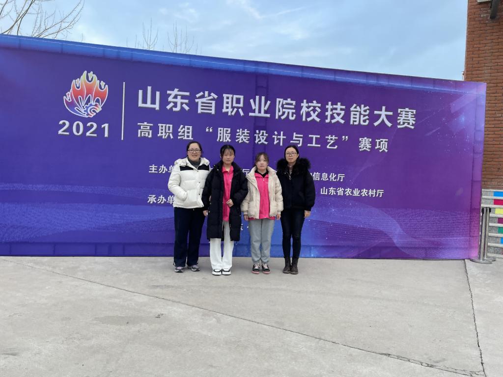 11月26日—29日,2021年山东省职业院校技能大赛高职组服装设计与工艺比赛在山东科技职业学院举行。参加本次比赛的院校包括山东科技职业学院、青岛职业技术学院、威海职业学院等全省十所高职院校。本次比赛奖项设一等奖一名,二等奖二名,三等奖三名,我校由李晶、李珊珊老师指导的于亚慧、王窈两名同学组队参赛获得第四名三等奖的成绩。