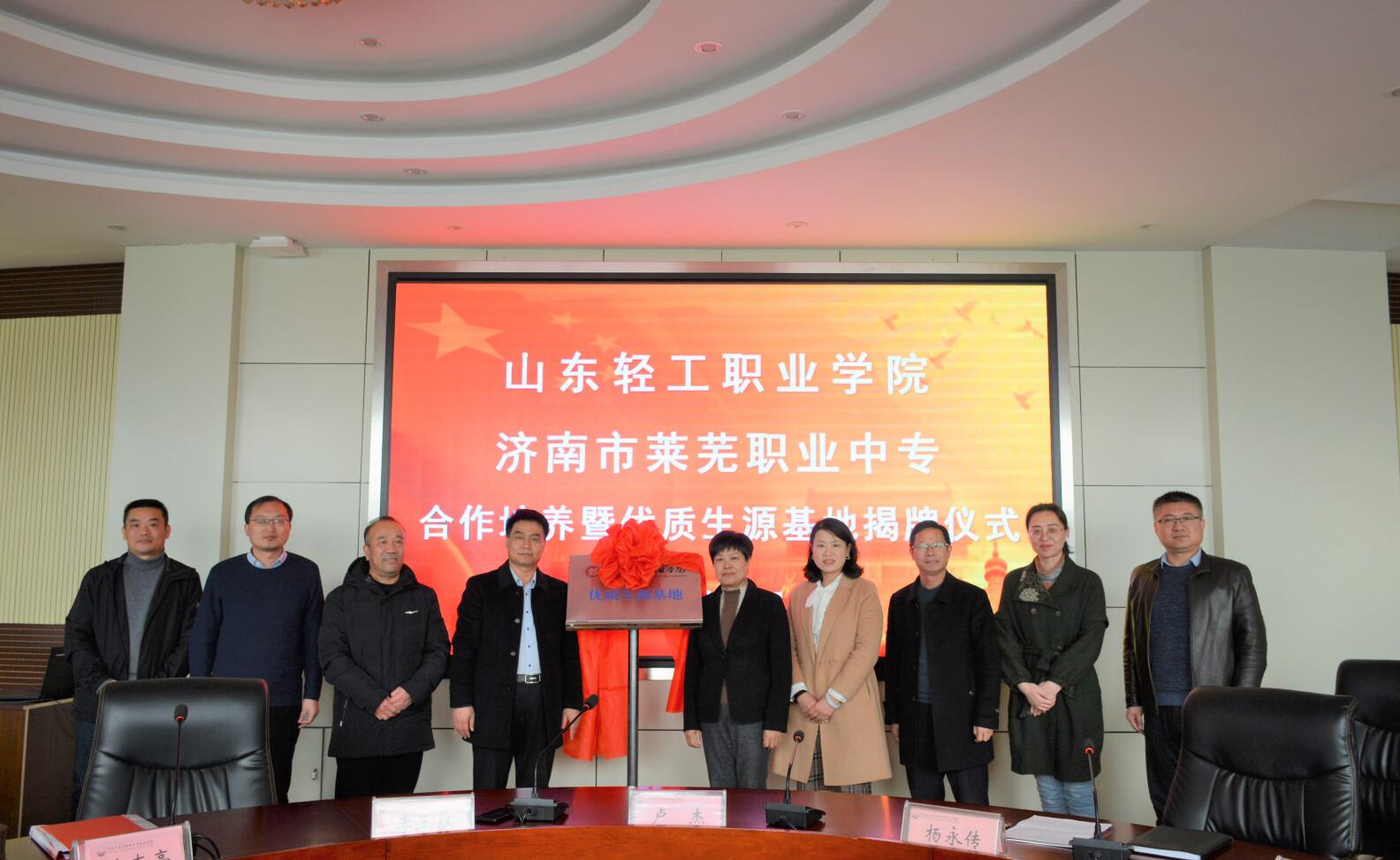 12月16日,我校与莱芜职业中专合作培养暨优质生源基地揭牌仪式在莱芜职业中专举行,副院长李玉红、相关部门负责人参加活动,受到莱芜职业中专校长卢杰、副校长杨永传、工会主席张务彬热情接待。