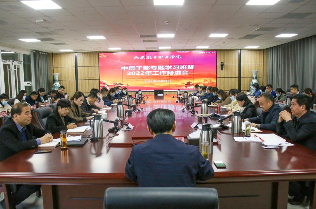 孙才顺院长对2021年的工作进行了总结,并对2022年工作计划提出要求。他指出,2021年,全校上下围绕“一年夯实基础、两年大步突破、三年迈进”的战略目标,打基础、强根本,积极谋划“十四五”事业发展,学校各项事业发展再上新台阶。2022年是学校发展的大步突破之年,要准确把握“十四五”时期教育改革发展形势要求,深刻认识新发展阶段的新特征新要求,明确“十四五”学校发展主要目标和重点任务,抓基层、强基础,聚集重点项目,改进工作作风。坚持以师生为中心的发展理念,抓好高水平专业群建设工作,提升人才培养质量,不断深化教学改革,推动学校以更快的速度向更高的目标迈进,以优异成绩迎接党的二十大胜利召开。