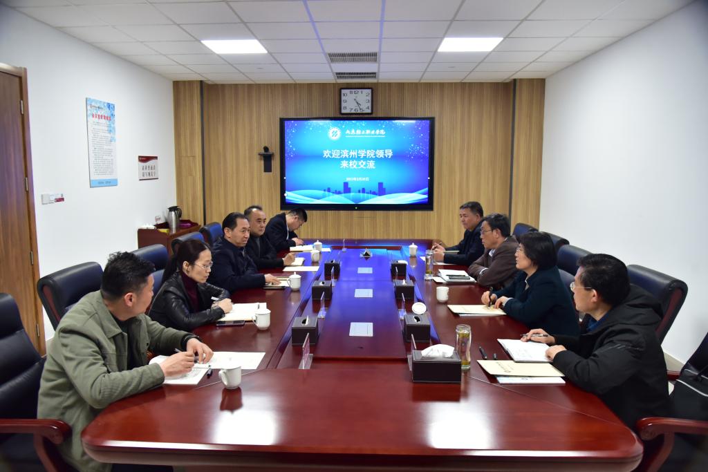2月25日下午,滨州学院党委委员、副院长杨玉森,财务处处长孔祥峰,安全保卫处处长王尽新,后勤管理处处长陈国林一行4人来校就财务、安全保卫、后勤管理服务等方面进行工作交流。学校领导孙才顺、李志刚,财务处处长崔锦、后勤处处长管清武,保卫处处长史新伍参加交流座谈。