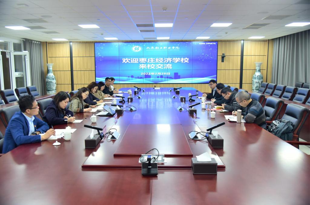 2月28日上午,枣庄经济学校党委委员、副校长宋文一行4人来我校交流。党委委员、副院长焦翠平,党委委员、党委宣传部部长、马克思主义学院院长夏文燕及相关部门负责同志参加座谈。