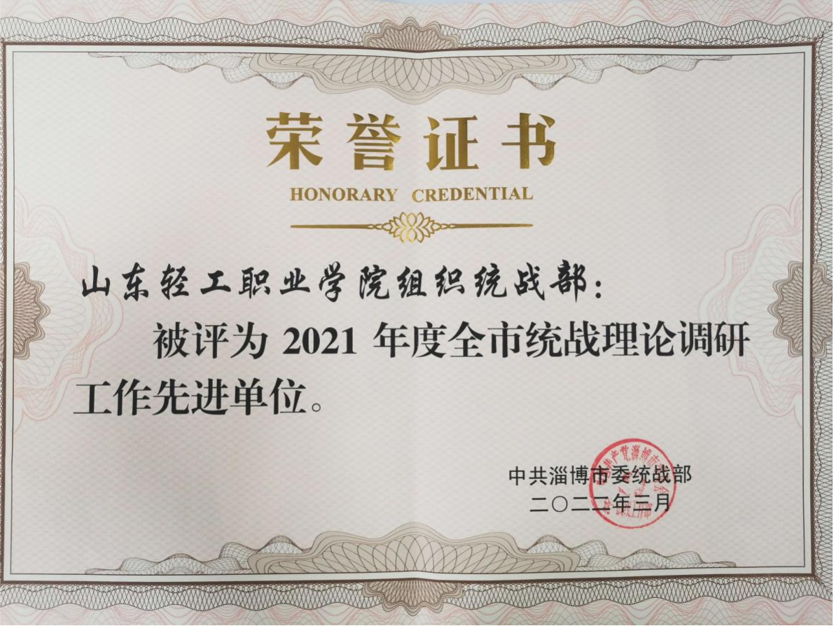 近日,市委统战部通报表彰了2021年度全市统战理论调研宣传信息及实践创新成果,我校党委组织统战部荣获“2021年度全市统战理论调研工作先进单位”称号,同时推荐的《新时代高校青年党外知识分子思想政治工作载体创新研究》获得全市统战理论调研优秀成果三等奖。