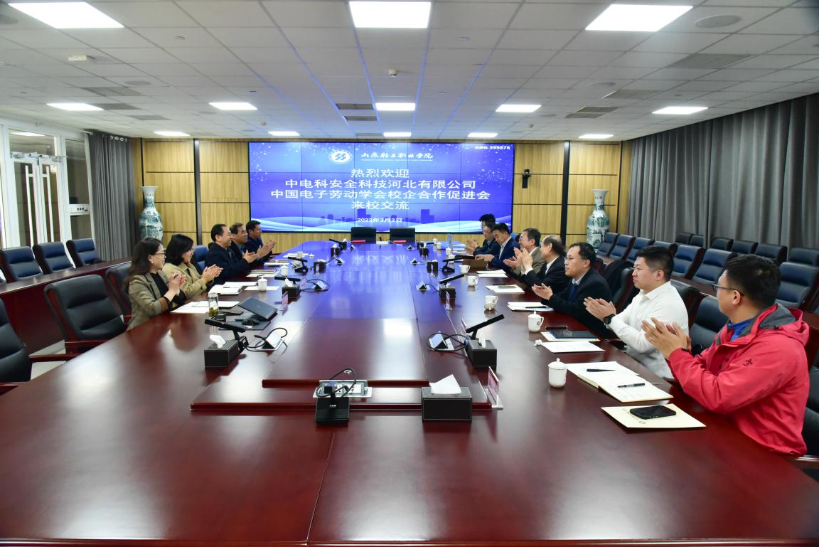 近日,中国电子科技集团公共安全方向首席科学家高晓滨、中电科安全科技河北有限公司总经理李秀成一行到校考察交流并与学校签署战略合作协议。中国电子劳动学会校企合作促进会会长宋承祥,学校党委副书记、院长孙才顺,党委副书记袁雷,党委委员、党委宣传部部长夏文燕及有关同志参加座谈和签约仪式。