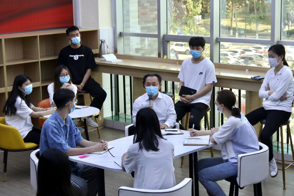分享结束后,孙院长主动与同学们聊起了家常,询问大家还有什么学习生活困难 。同学们就关心的体育健康、就业、疫情政策、心理健康等问题畅所欲言,孙院长耐心倾听,一一解答。他指出,同学们学习生活的关注点,就是他工作的重点,让同学们学习好生活好就是他工作的动力和目标,很高兴能与同学们面对面交流,希望他的工作能使同学们更加地安心、舒心、放心。