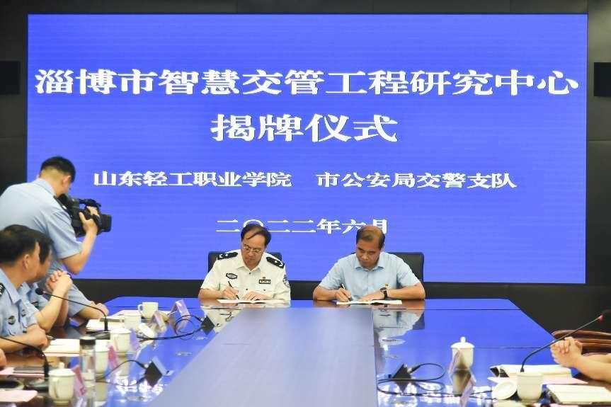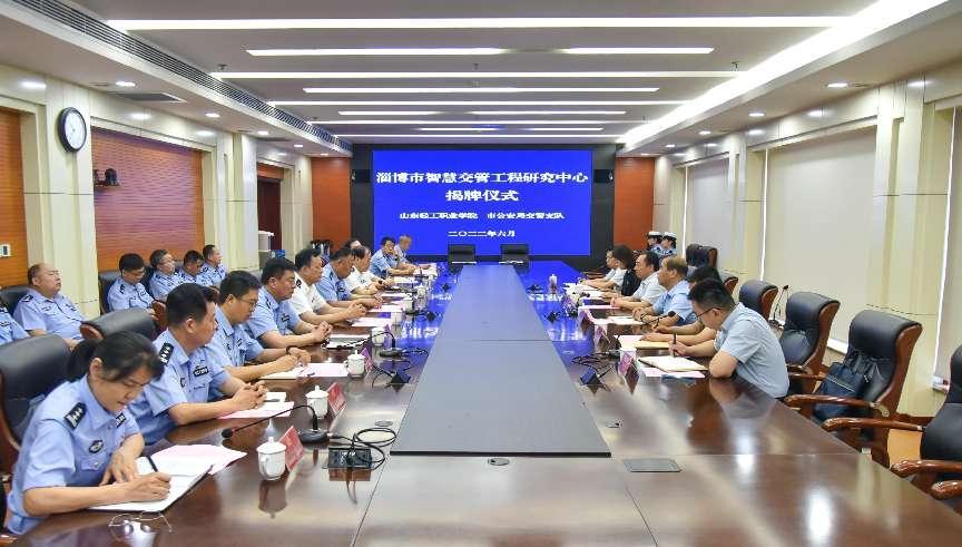 6月17日,我校与淄博市公安局交通警察支队共建淄博智慧交通管理工程研究中心揭牌仪式,在市公安局交警支队会议室举行。学校党委副书记、院长孙才顺,党委副书记袁雷,党委委员、副院长焦翠平,淄博市公安局交警支队党委书记、支队长孙敬双,政委张志军出席,学校及市公安局交警支队相关部门负责人参加仪式。