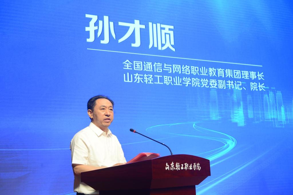 全国通信与网络职业教育集团由学校、中电网络通信集团有限公司、中国电子劳动学会校企合作促进会等单位牵头组建,旨在促进通信与网络职业教育与经济社会发展需求的紧密对接,打造校企命运共同体,加速推动数字产业创新发展、培育数字人才。成立大会上为学校“山东省工程技术研发中心”“山东省新旧动能转换公共实训基地”“华为信息与网络技术学院”“嘉环ICT产业学院”揭牌。聘任宋承祥、高鸿、郑立森为职教集团首席专家。会议选举产生了第一届常务理事、副理事长、理事长和单位。学校被选为集团理事长单位,孙才顺被选为理事长。