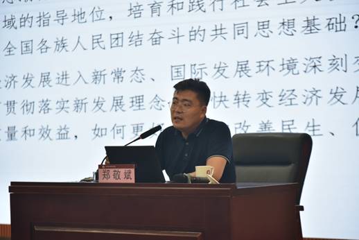 会上,山东大学马克思主义学院副院长、教授郑敬斌以《基于青年价值观的新时代思想政治教育创新》为题,以习近平总书记重要讲话精神为主线,以新时代思想政治教育创新为切入点,从“改革开放以来中国社会发展”“改革开放以来青年价值观变迁”“新时代思想政治教育创新的指向”三个方面作了主题报告。整场报告运用大量实例生动形象地展现了思想政治教育的思想性和价值引领性,为进一步做好青年师生思想政治教育工作提供了理论遵循和工作依据。