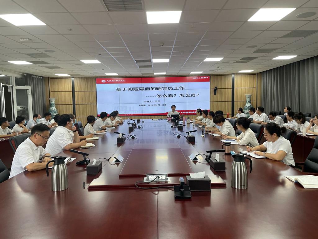为贯彻落实习近平总书记关于做好高校思想政治教育的工作要求,进一步提高辅导员队伍政治素养、专业水平和职业能力,学校于7月13日至15日举办了2022年暑期辅导员素质能力提升培训。本次培训主要涵盖辅导员素质能力提升、心理健康教育、危机事件处理等内容。学校领导、各系院分管学生工作的副主任、专职辅导员、党委学生工作部及团委相关人员参加。