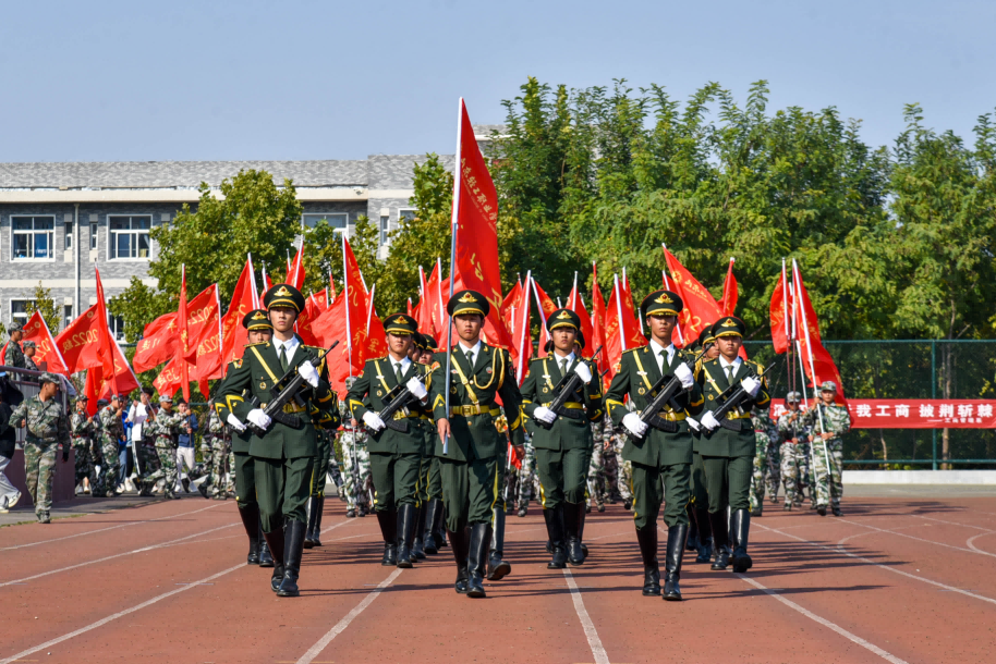党委副书记、院长孙才顺向承训部队赠送锦旗,并在大会上致辞,孙院长对5078名新生表示热烈的欢迎,并向承担此次新生军训任务的教官表示慰问和感谢。在新生开启大学生涯之际,他提出了四点希望和要求,勉励同学们要做理想远大的勤学者、做目标坚定的奋斗者、做把握机遇的创新者、做学以致用的实干者。希望同学们做一名有理想、敢担当、能吃苦、肯奋斗的新时代好青年,让青春在全面建设社会主义现代化国家的火热实践中绽放绚丽之花。