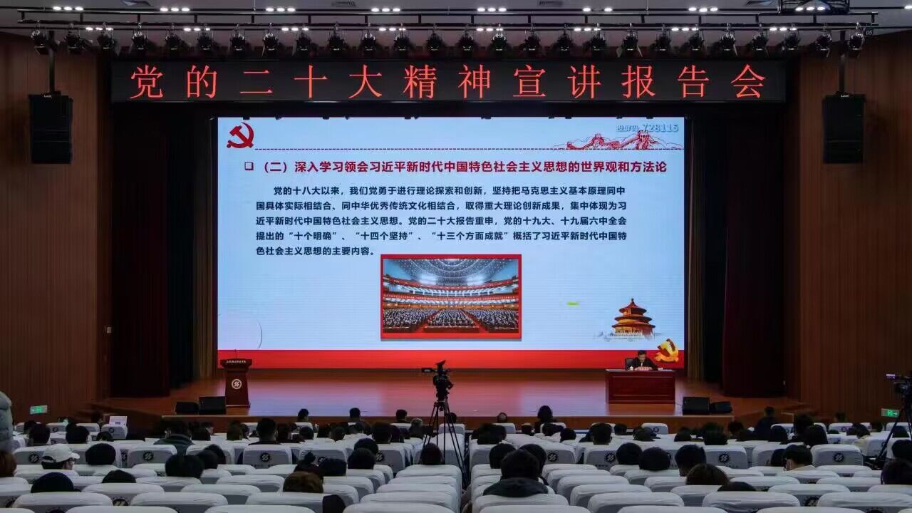 11月24日,市委常委、组织部部长褚振东到学校宣讲党的二十大精神,并作形势政策报告。