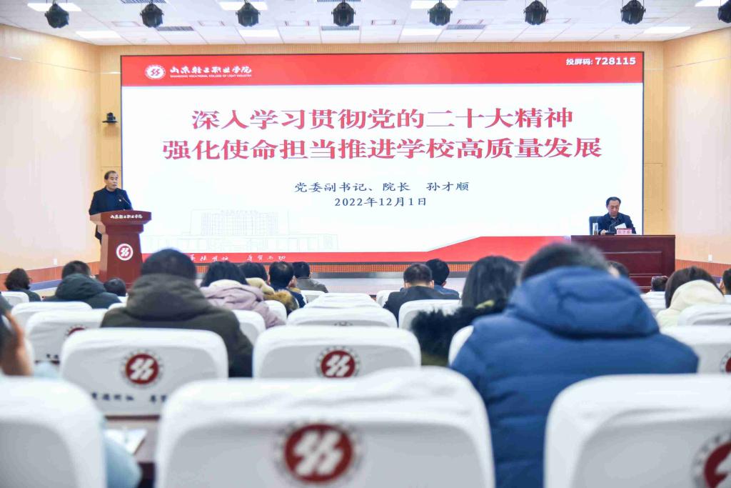 12月1日下午,学校党委副书记、院长孙才顺宣讲党的二十大精神。党委中心组成员,师生代表聆听宣讲。宣讲会由党委副书记袁雷主持。