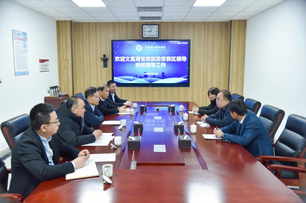 范桂君代表学校对孙锋主任一行的到来表示欢迎,并对文昌湖区长期以来对学校发展的关心和支持表示感谢。他表示,学校与文昌湖区合作友谊深厚,下一步学校将进一步加强与文昌湖区的交流联系,在专业建设、人才培养、校地合作等方面持续发力,积极拓展更深层的合作,更精准地为地方发展服务,与文昌湖区一道共同为全市高质量发展大局贡献力量。