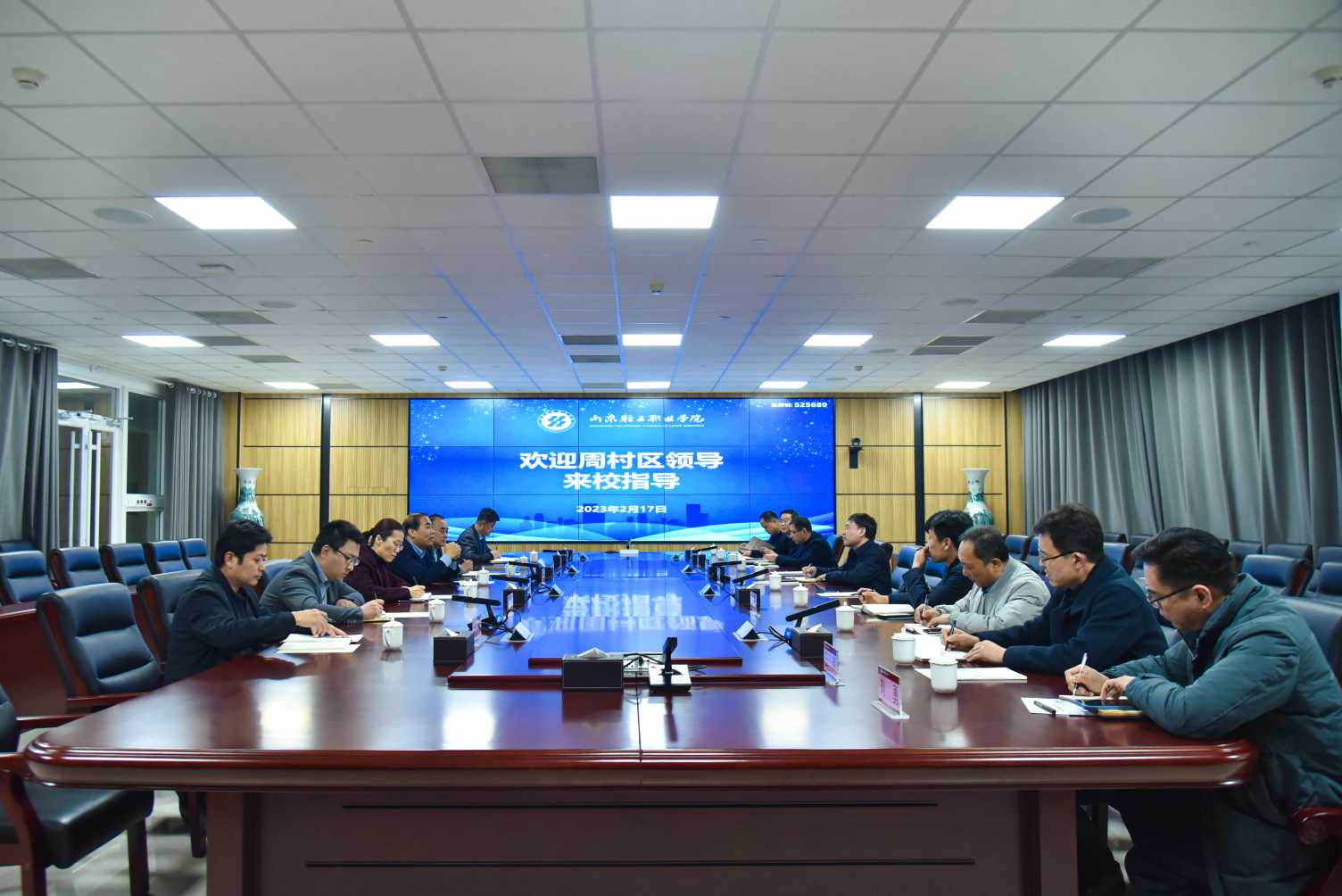 本站讯2月17日下午,周村区区委常委、副区长耿峰一行来校指导工作。党委副书记、院长袁雷,党委委员、副院长李志刚及有关方面负责人陪同。