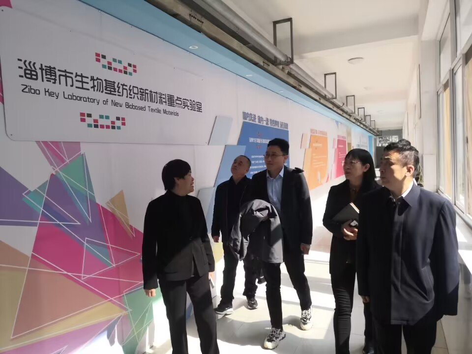王宁处长一行实地调研了淄博市生物基纺织新材料实验室。李玉红、邵磊及学校相关部门负责人陪同调研。