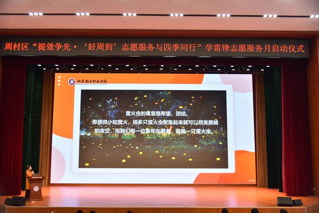 启动仪式后,开展了2023年周村区新时代文明实践首场志愿服务培训。我校荣获2022年度全省学雷锋志愿服务四个100"先进服务组织、全国三下乡社会实践优秀品牌项目的“萤火虫”志愿服务队负责人进行经验分享;学校团委书记曹荔就新时代文明实践志愿服务有关知识进行培训。