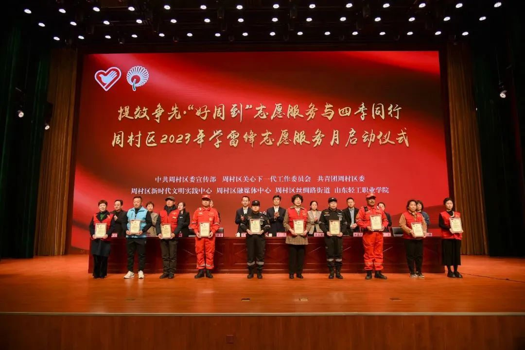 本站讯(通讯员 曹荔)青春轻院,凝聚正能量;春风送暖,雷锋精神薪火相传。在毛泽东等老一辈革命家为雷锋同志题词60周年之际,在习近平总书记对深入开展学雷锋活动作出的重要指示精神的指引下,3月4日上午,周村区“提效争先·‘好周到’志愿服务与四季同行”2023年学雷锋志愿服务月启动仪式在我校举行。周村区委常委、宣传部部长、教育工委书记薛华伟,学校领导公昆、夏文燕出席活动。
