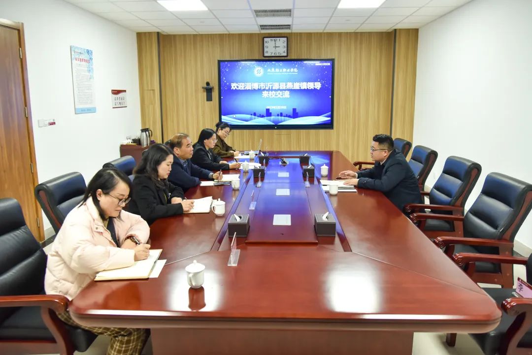 本站讯(通讯员 庄明星)2月28日下午,淄博市沂源县燕崖镇党委书记于庆一行来校交流乡村振兴产业学院建设事宜。学校党委副书记、院长袁雷,党委委员、党委宣传部部长夏文燕,商务贸易系副主任巩向玮以及相关人员参加了交流座谈。