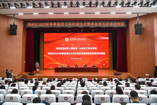 本站讯(通讯员 李靖远)3月15日上午,周村区2023年春季退役士兵欢迎仪式暨“革命老兵宣讲进校园”活动在我校举行。淄博市优秀退役军人孙广瑞,学校党委委员、党委组织统战部部长常立,周村区退役军人事务局副局长袁春以及150余名退役军人、师生代表参加了本次活动。