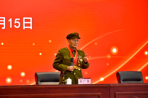 活动特别邀请了淄博市革命老兵红色事迹宣讲团成员、淄博市优秀退役军人、92岁的孙广瑞同志为大家做报告。他讲述了抗美援朝上甘岭战役中战友们不怕牺牲、浴血奋战的感人事迹,勉励大家要珍惜和平生活,不忘初心使命,把红色精神一代代传承下去。与会人员对孙广瑞同志英勇顽强的斗争故事、赤诚报国的爱国情怀感到由衷的敬佩。
