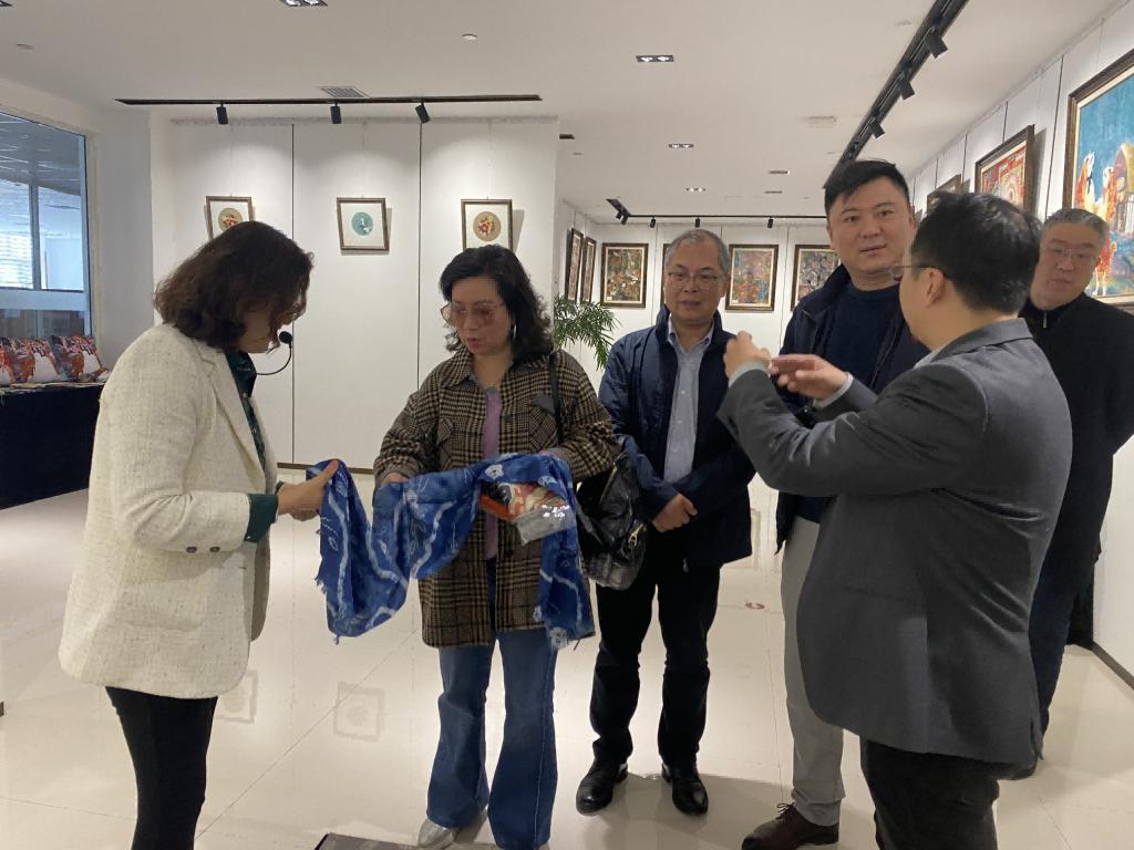 座谈结束后,杨海斌一行参观了我校“奋进新时代 筑梦新征程”师生作品汇报展,对我校师生的设计作品给予了高度评价,并希望双方今后做好常态化交流,推动合作项目落地。