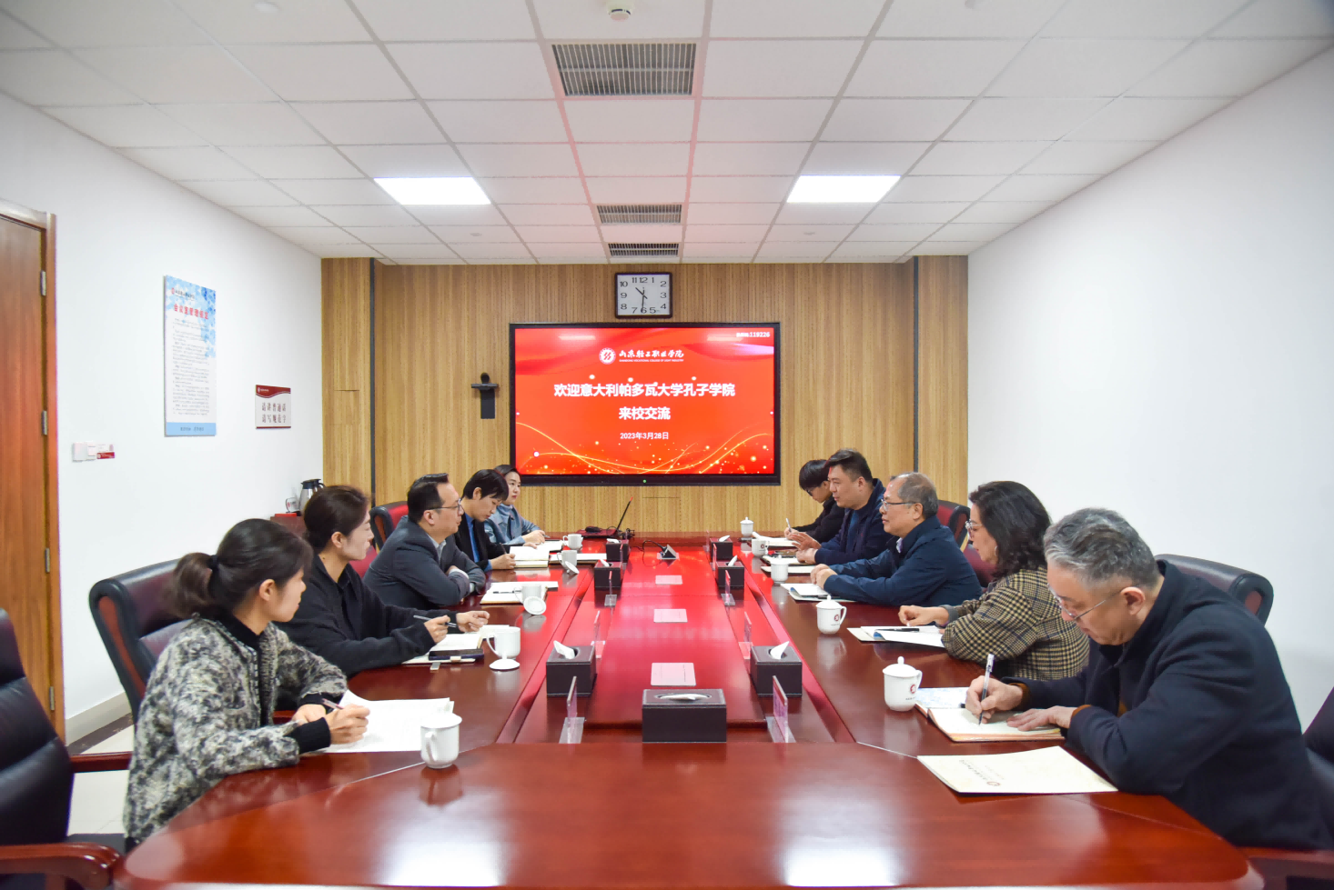 本站讯(通讯员 侯梦璇)3月28日,意大利帕多瓦大学孔子学院院长杨海斌一行5人到访我校。学校党委委员、党委组织统战部部长常立及相关系部负责人参加了交流活动。