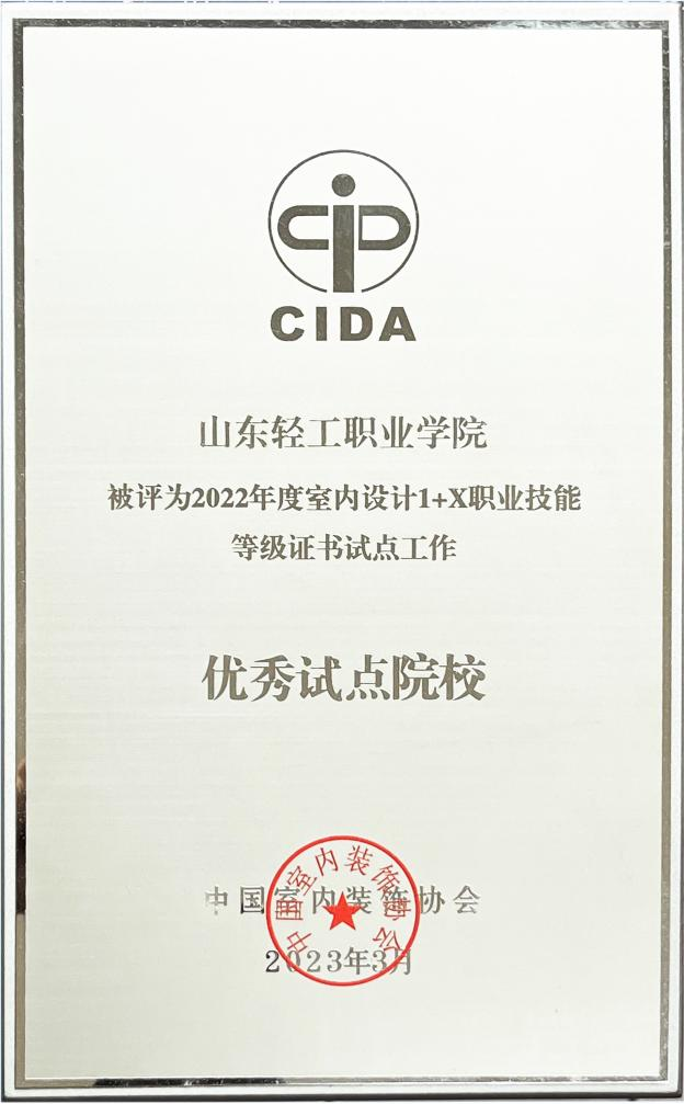 本站讯(通讯员 石向飞)3月26日至29日,2023中国室内设计教育大会在北京召开,山东轻工职业学院荣获中国室内装饰协会颁发的“2022年度室内设计1+X职业技能等级证书试点工作”优秀试点院校。