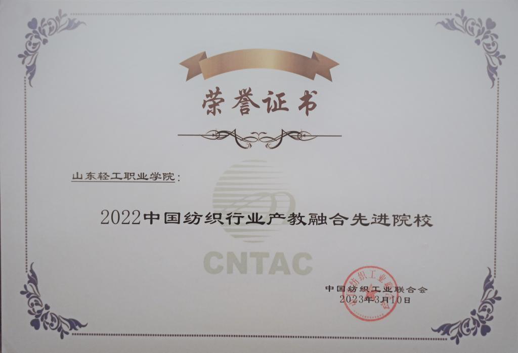 大会发布了2022年中国纺织行业人才建设优秀单位、个人、院校和集群榜单,我校获得“2022中国纺织行业产教融合先进院校”荣誉称号。