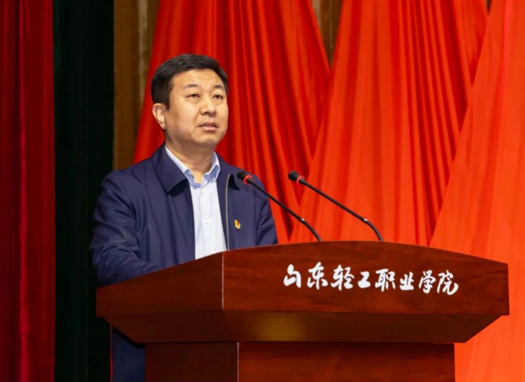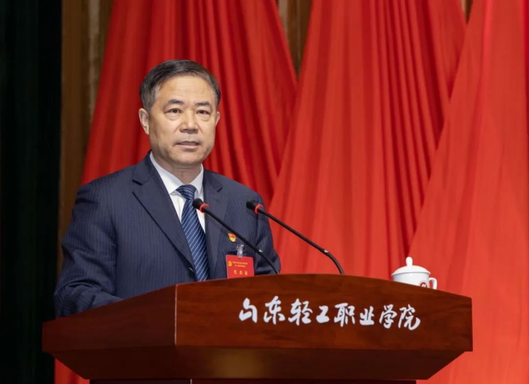 孙英涛代表市委教育工委向大会的胜利召开表示热烈祝贺。他指出,自学校第一次党代会召开以来,山东轻工职业学院党委在市委、市政府的坚强领导下,团结带领广大党员干部群众,扎实进取、锐意改革,在人才培养、专业建设、社会服务等各个方面都取得了非常显著的成绩,为全市职业教育事业发展和淄博地方经济社会建设做出了积极贡献。本次党代会是在我市全力推进职业教育高质量发展,学校加快建设一流特色高水平高职院校的关键时期,召开的一次十分重要的会议。希望学校切实加强党的全面领导,为高质量发展提供坚强政治保证;聚焦立德树人根本任务,努力培养担当民族复兴大任的时代新人;积极服务融入发展大局,为新时代社会主义现代化强市建设贡献力量。他要求,学校新一届党委领导班子要团结带领全校党员干部群众,砥砺前行、锐意进取,奋力谱写学校高质量发展新篇章。