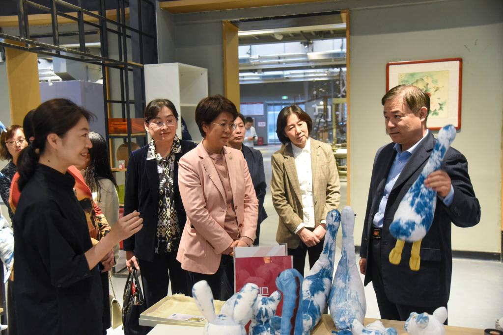 成文一行参观了学校1960丝绸文化创意园,成文对学校丝绸文化建设工作给予高度评价,对学校一直以来对市妇联工作的支持表示感谢。他表示,市妇联将全力支持学校发展建设,进一步加深与学校的合作交流,发挥好引领、服务、联系职能作用,与学校一道共同为淄博市发展建设贡献力量。
