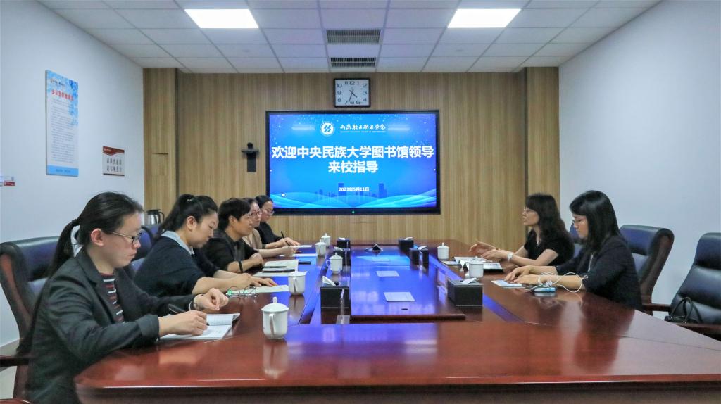 本站讯(通讯员 刘菲)5月11日下午,中央民族大学图书馆刘明新馆长一行,到我校图书馆进行参观交流。学校副院长李玉红、图书馆馆长马雪梅和图书馆相关人员在K910会议室与来宾进行深入座谈。