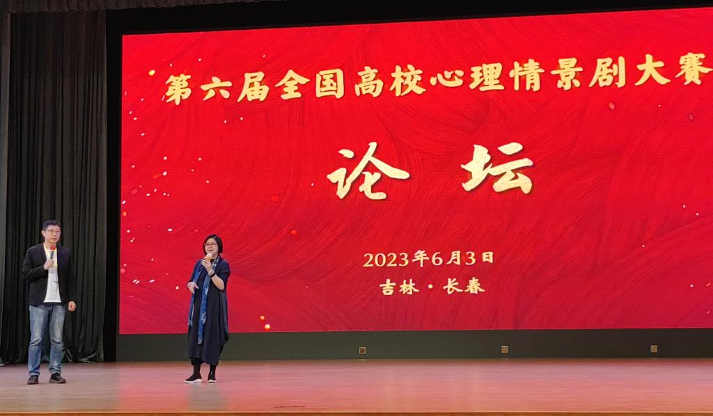 6月3日上午,我校作为一等奖获奖单位,参加了第六届全国高校心理情景剧展演颁奖典礼暨第六届全国高校心理情景剧论坛,并在论坛上进行了创作分享。中央广播电视总台社教节目中心社会节目部《心理访谈》栏目制片人兼主持人沙玛阿果对我校剧目进行了专题点评,给予了高度肯定。