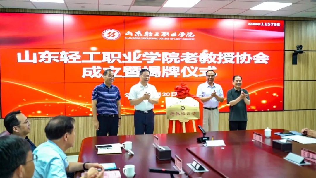 会上宣读了山东轻工职业学院老教授协会成立的决定,公布了协会委员会成员名单。毛有高、都光珍、范桂君、袁雷为山东轻工职业学院老教授协会揭牌。