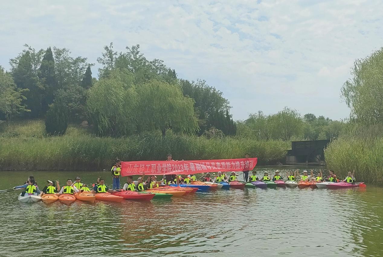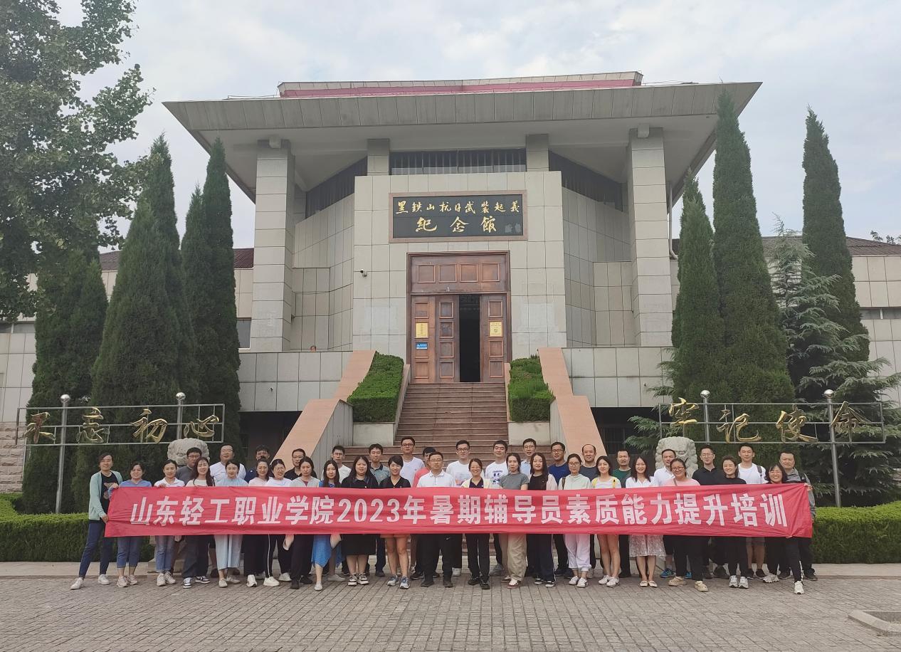 在素质拓展环节中,在教练员指导下,从热身小游戏开启破冰之旅,辅导员先后进行团队皮划艇、一字长蛇阵、水上钢琴舞三个拓展项目。整个过程充分锻炼辅导员的智力、体力和团队协作能力,大家全心投入、积极参与,展现团队精神的同时,愉悦了身心、传递着快乐。在淄博黑铁山抗日武装起义纪念馆,辅导员们一起重温入党誓词,回顾光辉的革命岁月,近距离感悟革命精神。