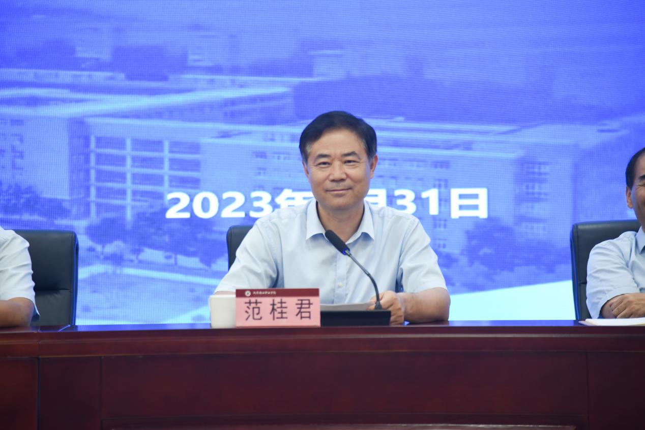 本站讯(通讯员 罗震)8月31日下午,学校举行2023年新教师入职培训开班仪式,学校党委书记范桂君出席并作讲话。学校领导班子成员、相关职能部门负责人、各系院党政负责人、全体2023年新入职教师及指导教师参加活动。
