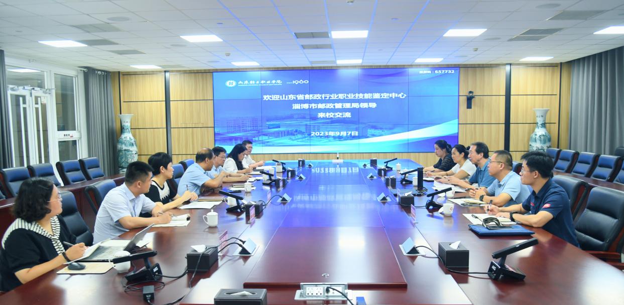 袁敬军简要介绍了山东省邮政行业职业技能鉴定工作的开展情况和未来目标,期待学校与淄博市邮政管理局的合作能够做出实绩。双方探讨了下一步省邮政行业职业技能鉴定中心与学校在师资建设、人才培养、职业技能认定等方面开展深入合作的可行性,并就快递员职业技能等级认定依据标准、题库建设、考评员储备等进行详细交流。